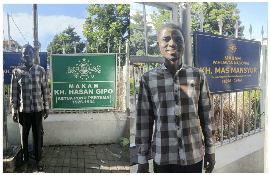 Liburan kemarin merupakan momen yang menyenangkan bagi Siddiq Ibrahim, Mahasiswa Pascasarjana UINSA dari Nigeria. Setelah 8 bulan di Indonesia, baru hari ini pertama kalinya dia menginjakkan kaki di lokasi episentrum bersejarah yang diabadikan menjadi nama kampus tempatnya menuntut ilmu di Indonesia. Dia berkesempatan mengunjungi wisata religi Ampel, berbincang tentang Sejarah Sunan Ampel dan Wali Songo, sholat berjama’ah di Masjid Ampel yang berusia lebih dari 600 tahun dan berziarah di makam Sunan Ampel. Blusukan di kampung dan pasarnya serta tak lupa mencicipi kuliner Arab khas Ampel.