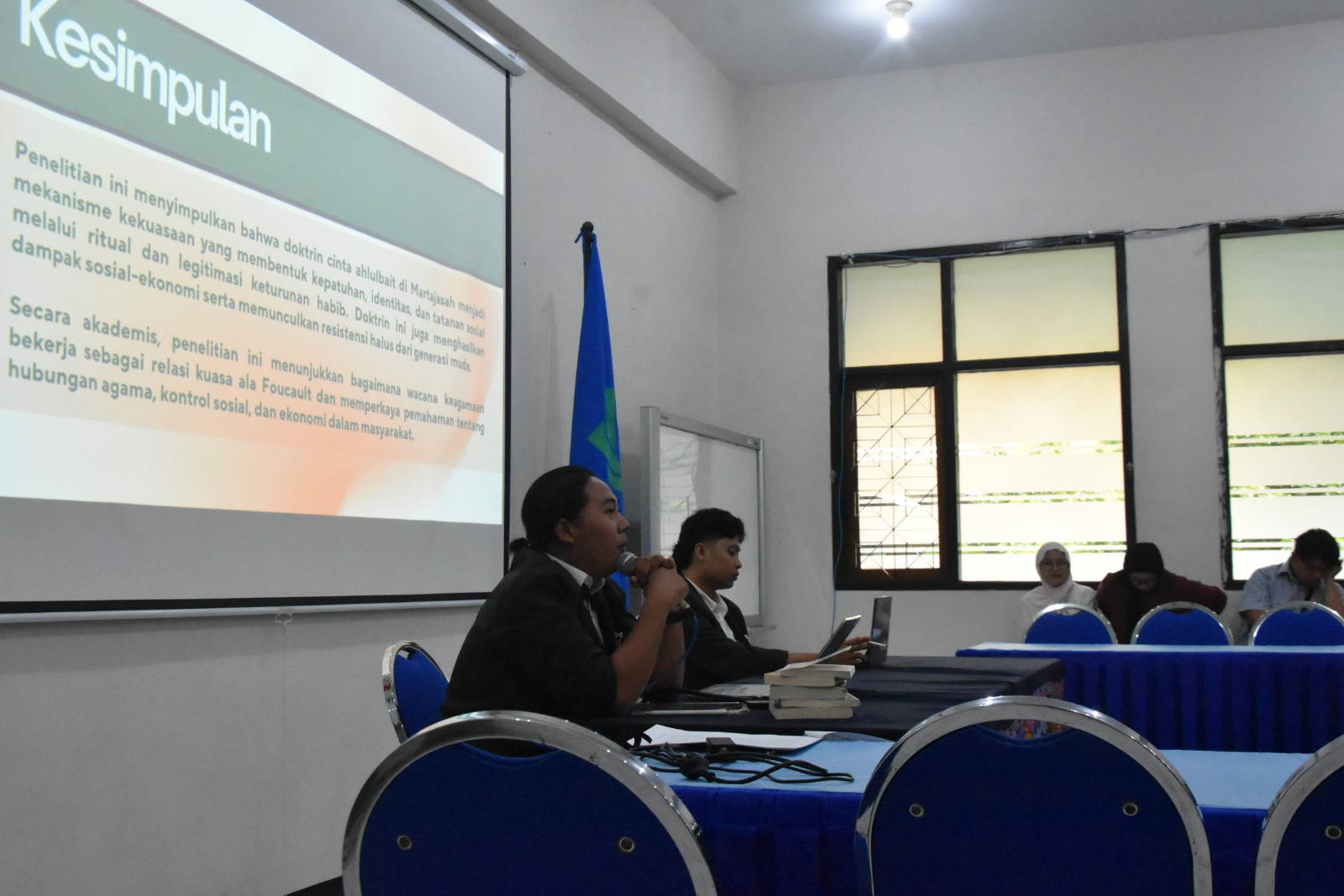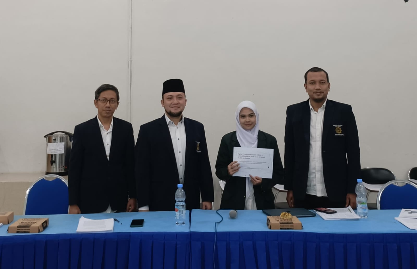 Pada sesi siang hari pukul 13.00–15.00 WIB, Rodina Billah dan M. Satrio Wibowo Z. mengikuti sidang munaqasyah dengan tim penguji Prof. Dr. Mukhammad Zamzami, Lc., M.Fil.I., Dr. Ida Rochmawati, M.Fil.I., Fathoniz Zakka, Lc., M.Th.I., dan Dr. Akhmad Siddiq, M.A.