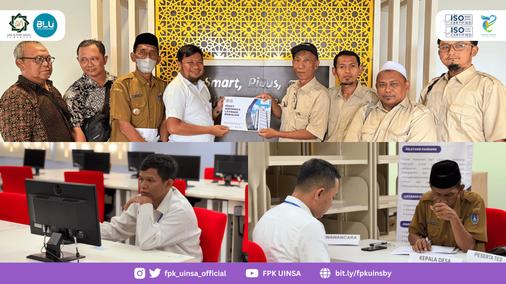 Surabaya – (13/10/2025) Pemerintah Desa Cukir, Kecamatan Diwek, Kabupaten Jombang, bekerja sama dengan Pusat Asesmen dan Layanan Psikologi (PALP) Universitas Islam Negeri Sunan Ampel Surabaya (UINSA), menggelar seleksi calon perangkat desa berbasis Computer Assisted Test (CAT). Kegiatan ini dilaksanakan di Laboratorium Komputer Lt. 3, Gedung Fakultas Psikologi dan Kesehatan (FPK) Kampus Gunung Anyar, Surabaya.