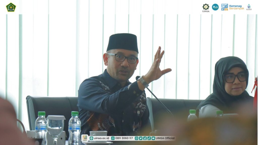 Rektor UINSA, Prof. Akh. Muzakki, M.Ag., Grad.Dip.SEA., M.Phil., Ph.D., hadir dan menyambut langsung rombongan STAIN Majene bersama para Wakil Rektor, Kabiro, serta Tim Pusat Teknologi Informasi dan Pangkalan Data (PUSTIPD) UINSA. Rektor dalam sambutannya menyampaikan, bahwa kegiatan ini adalah bagian dari sinergi antara UINSA dengan STAIN Majene.