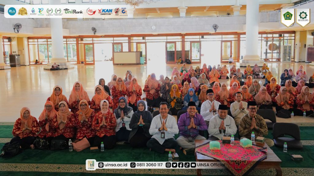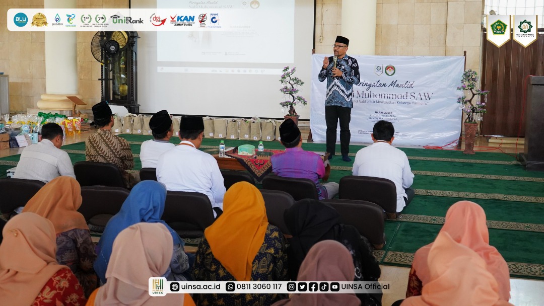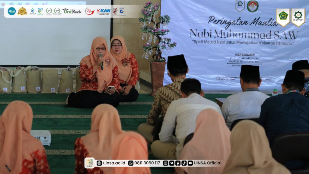 UINSA Newsroom, Jumat (19/09/2025); Jumat, 19 September 2025, UIN Sunan Ampel (UINSA) Surabaya menggelar ‘Peringatan Maulid Nabi Muhammad SAW.’ Bertepatan dengan tanggal 26 Rabiul Awwal 1447H, kegiatan yang diinisiasi Dharma Wanita Persatuan (DWP) UINSA Surabaya ini mengusung tema, ‘Spirit Maulid Nabi Untuk Mewujudkan Keluarga Harmonis.’