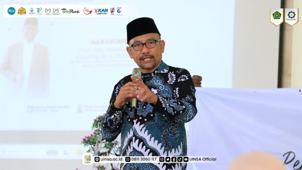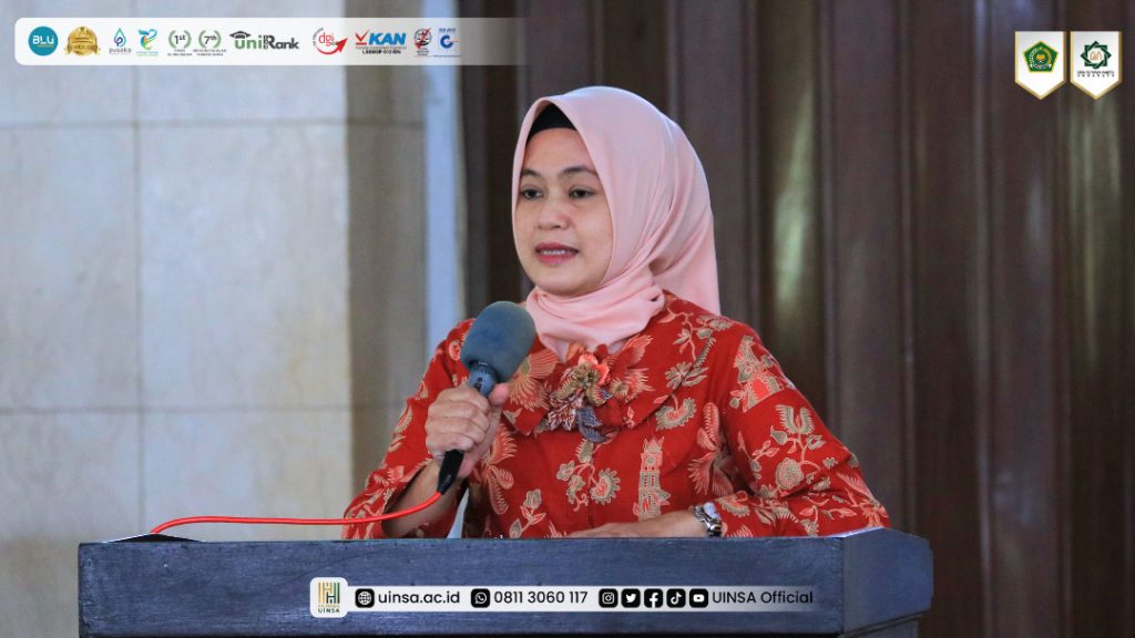 Rektor UINSA, Prof. Akh. Muzakki, M.Ag., Grad.Dip.SEA., M.Phil., Ph.D., hadir sebagai narasumber kegiatan didampingi para wakil rektor, Dekan, Ketua Lembaga dan SPI, serta tamu undangan dari bank Mitra. Ketua DWP UINSA Surabaya, Ny. Erna Mawati dalam sambutannya menyampaikan, ucapan terimakasih atas kehadiran para tamu undangan dalam kegiatan ini.