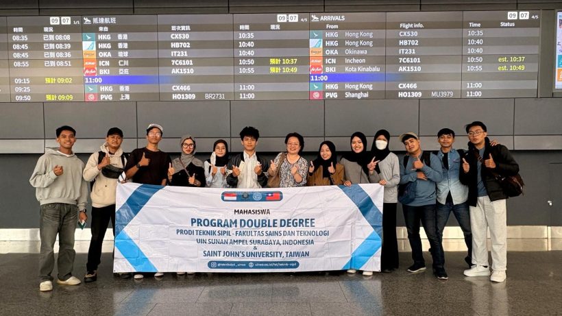 Fakultas Sains dan Teknologi (FST) UIN Sunan Ampel (UINSA) Surabaya kembali mencatatkan langkah penting dalam penguatan jejaring internasional. Pada Selasa, 9 September 2025, digelar acara Pelepasan Mahasiswa Program Double Degree (3+1) Prodi Teknik Sipil yang akan melanjutkan studi ke Saint John’s University (SJU), Taiwan di Autumn Semester 2025. Sebanyak 16