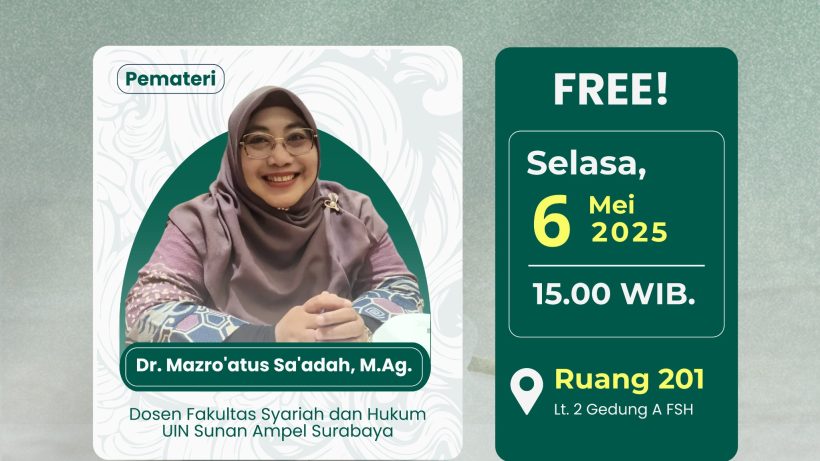 Surabaya, 6 Mei 2025 – Pusat Studi Fiqh dan Masyarakat Muslim (FIQHUNA) Fakultas Syariah dan Hukum (FSH) UIN Sunan Ampel Surabaya kembali menyelenggarakan Sharia Forum seri ketujuh dengan tema “Pergeseran Motif Perceraian di Masyarakat Urban Muslim.” Kegiatan yang berlangsung di Ruang 201, Lt. 2 Gedung A FSH ini menghadirkan Dr.