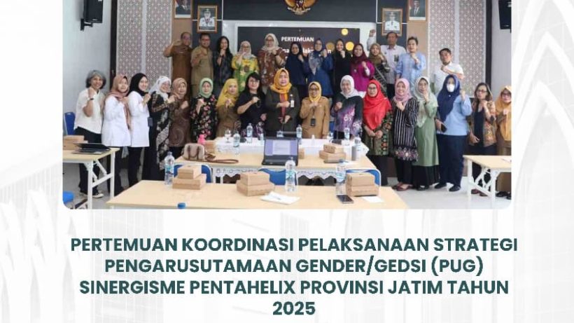 LP2M Report, 25 Agustus 2025 Pusat Studi Gender dan Anak (PSGA) Lembaga Penelitian dan Pengabdian kepada Masyarakat (LP2M) UIN Sunan Ampel (UINSA) Surabaya berpartisipasi aktif dalam Pertemuan Koordinasi Pelaksanaan Strategi Pengarusutamaan Gender (PUG) Sinergisme Pentahelix Provinsi Jawa Timur 2025 yang diselenggarakan Dinas Pemberdayaan Perempuan, Perlindungan Anak, dan Kependudukan (DP3AK) Provinsi