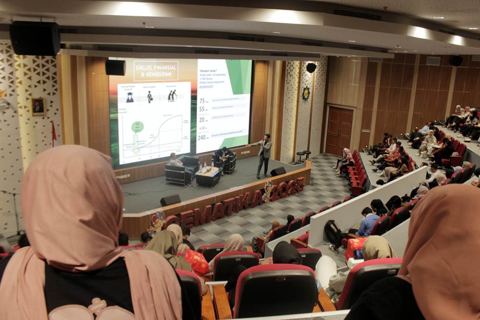 Ketua Program Studi Matematika, Dr. Yuniar Farida, M.T., menyampaikan dalam sambutannya bahwa kegiatan ini merupakan bentuk nyata integrasi antara ilmu matematika, pola pikir (mindset), dan manajemen finansial. Beliau menegaskan bahwa melalui kegiatan seperti ini, mahasiswa tidak hanya belajar memahami angka secara teoretis, tetapi juga bagaimana angka dapat menjadi alat untuk membangun kehidupan yang seimbang, terukur, dan bermakna.