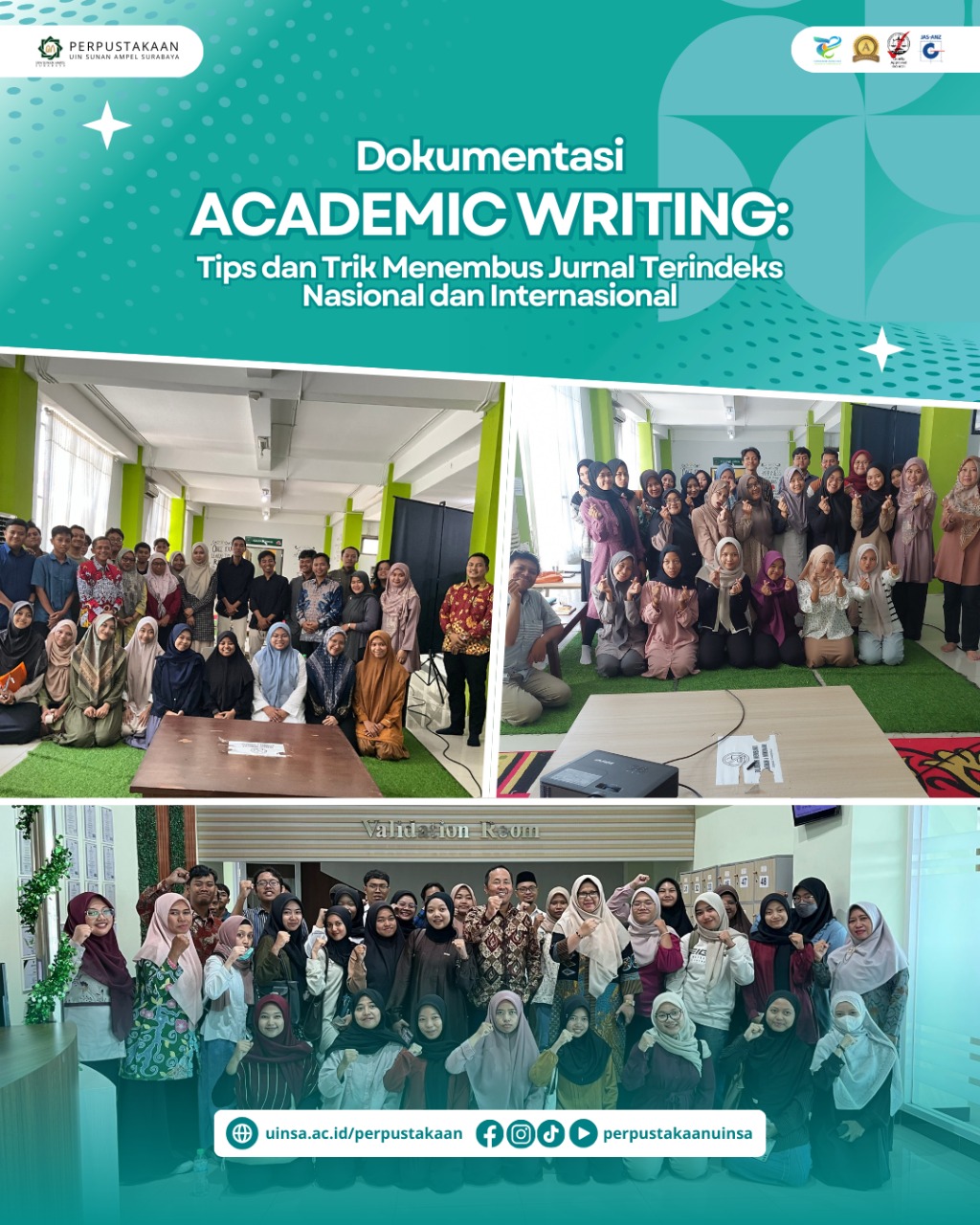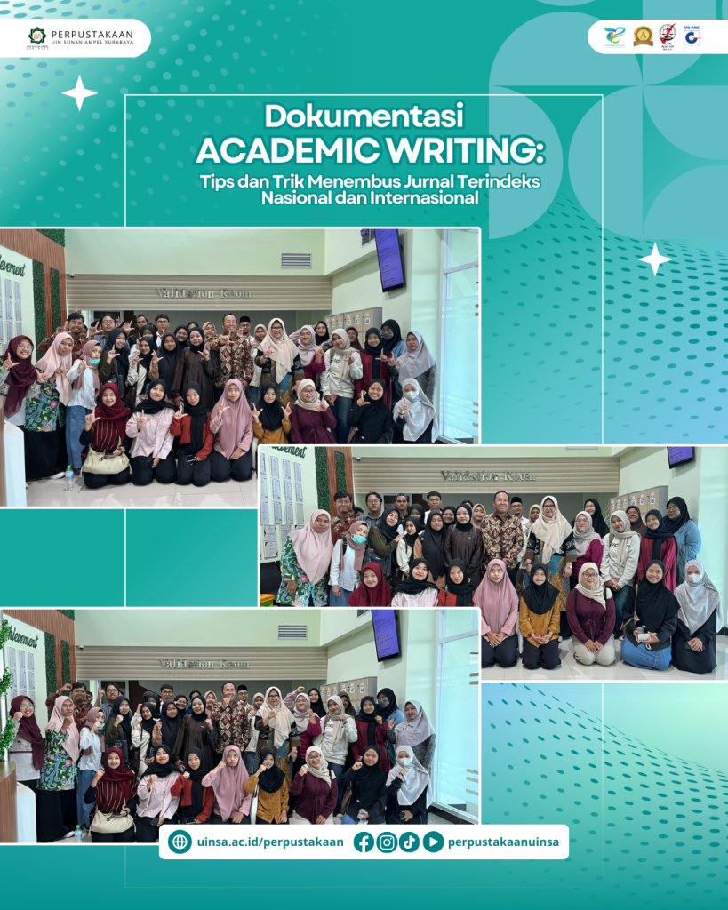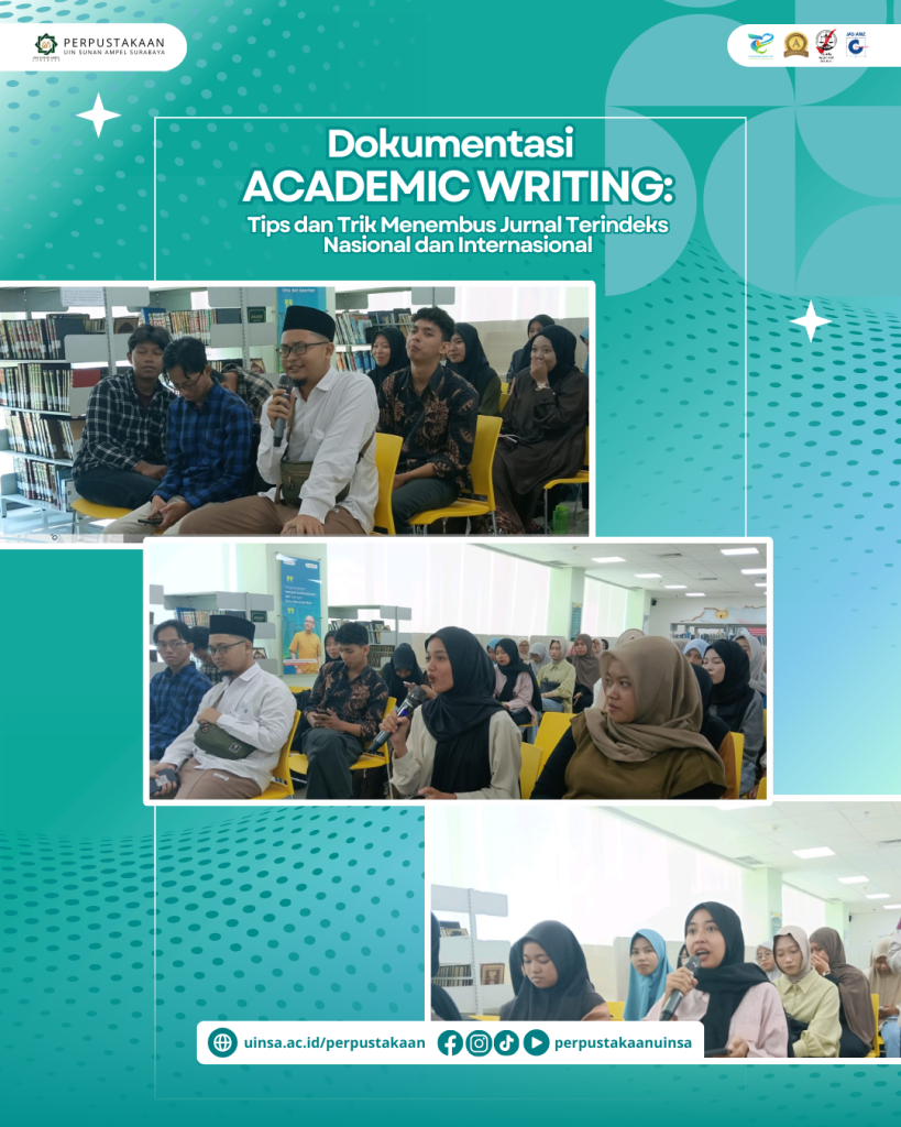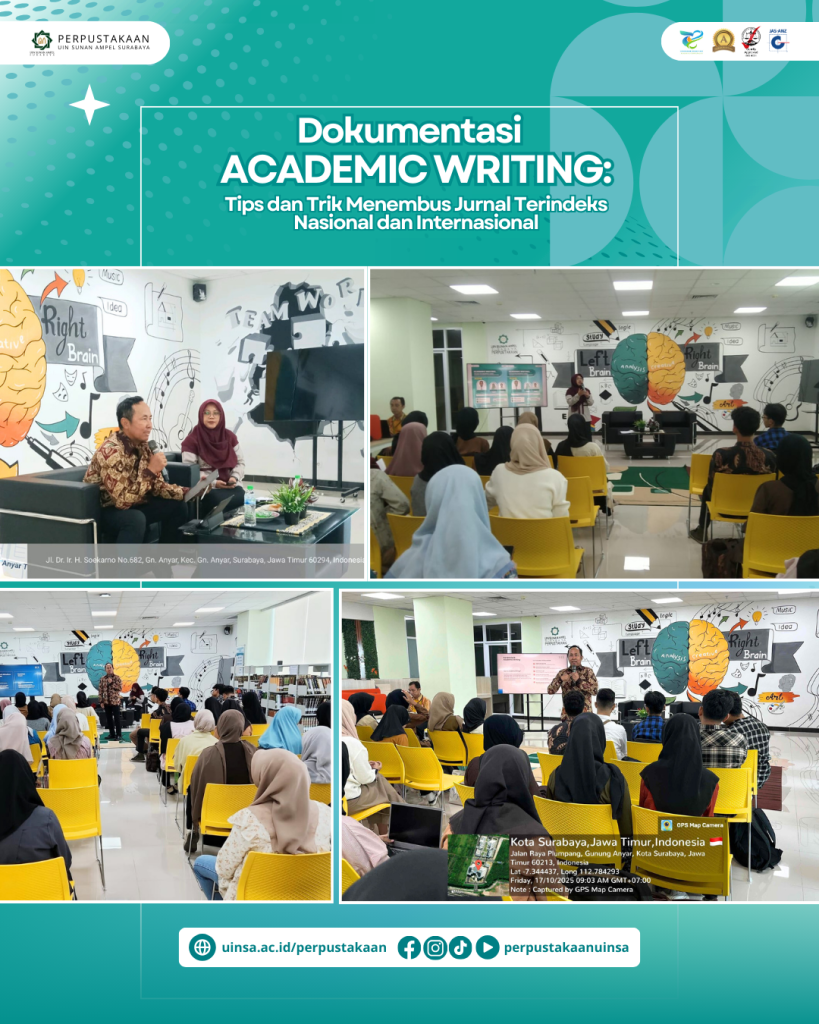 Perpustakaan telah sukses menyelenggarakan kegiatan academic writing bertajuk “Tips dan Trik Menembus Jurnal Terindeks Nasional dan Internasional” bagi sivitas akademika. Kegiatan ini berlangsung di dua perpustakaan dan dihadiri oleh sivitas akademika UINSA (17/10/2025). Untuk memberikan pemahaman yang komprehensif, perpustakaan menghadirkan narasumber yang berkompeten di bidang penulisan dan publikasi jurnal bereputasi yaitu Prof. Dr. Parmin, S.Pd., M.Pd. dan Prof. Dr. Dwi Cahyo Kartiko, S.Pd., M.Kes.