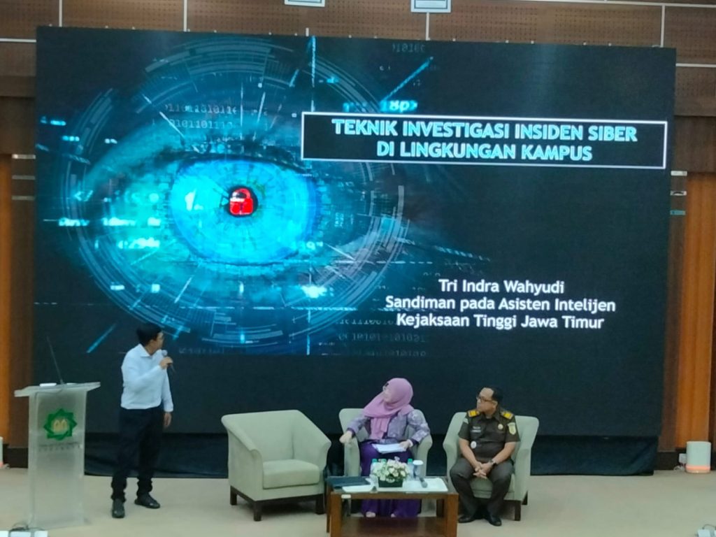 Hadir sebagai narasumber pada kegiatan ini adalah tim ahli siber dan ahli hukum dari Kejaksaan Tinggi Jawa Timur. Salah satu narasumber, Bapak Tri Indra WAhyudi, S.H. menyatakan bahwa keamanan komunikasi adalah aspek keamanan informasi yang ditujukan untuk mengamankan media komunikasi teknologi serta konten di dalamnya. Saat ini social engineering banyak membawa tantangan terhadap kebocoran data pribadi. Sehingga, sangat penting untuk memerhatikan keamanan komunikasi, termasuk didalamnya adalah keamanan data, jaringan, perangkat, aplikasi dan privasi. Aplikasi menjadi barang yang sangat rentan sebagai pintu masuk pencurian data pribadi. Untuk meningkatkan keamanan infokom, lanjutnya, perlu dibuat adanya kebijakan keamanan komunikasi dan informasi, melatih personil tentang kesadaran keamanan komunikasi dan informasi, menerapkan kontrol keamanan dan juga memantau sistem. Elemen utama yang perlu diperhatikan dalam menjamin keamanan siber diantaranya adalah aplikasi, cloud, kriptografi, pemulihan bencana, insiden respon, keamanan infrastruktur. Hal ini untuk memastikan bahwa ancaman berupa phishing, malware, man in the middle attacks, eavesdropping, data breaches dapat dihindari dan dimitigasi.