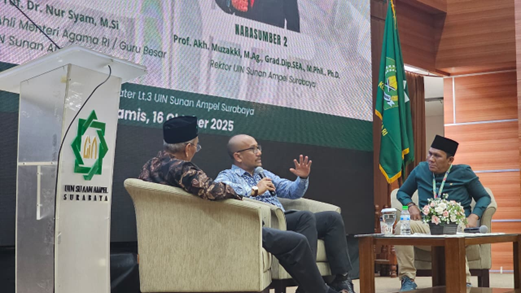 Acara yang berlangsung dari pukul 07.30 hingga 10.00 WIB ini menghadirkan dua narasumber kunci: Guru Besar Sosiologi UINSA yang juga Penasihat Ahli Menteri Agama RI, Prof. Dr. Nur Syam, M.Si dan Rektor UINSA, Prof. Akh. Muzakki, M.Ag., Grad.Dip.SEA., M.Phil., Ph.D., Keduanya mengupas tuntas konsep ITT dari sisi historis, filosofis, hingga model implementasinya dalam pembelajaran.