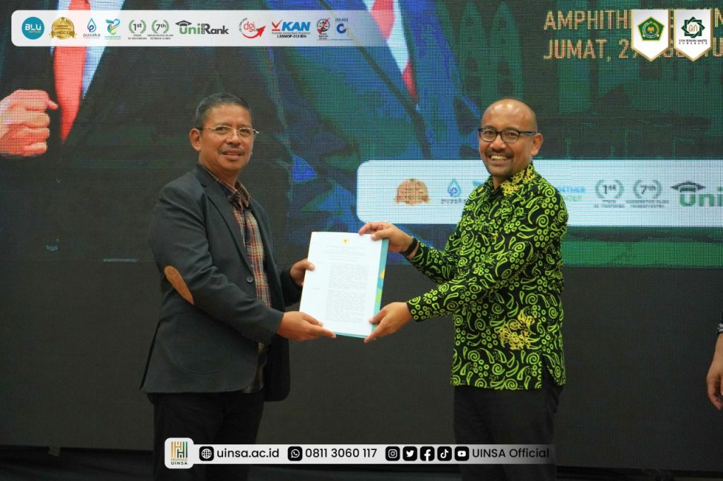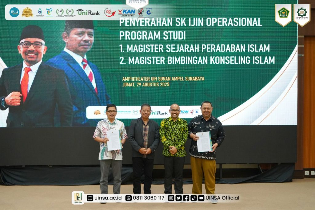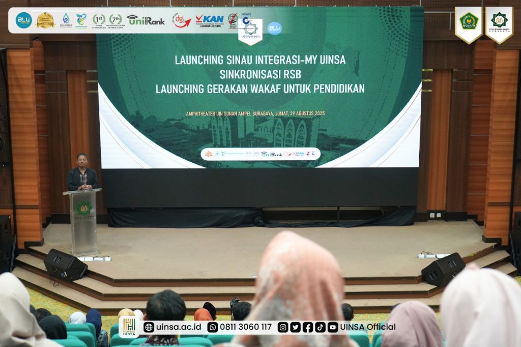 UINSA Newsroom, Senin (01/09/2025); Universitas Islam Negeri Sunan Ampel (UINSA) Surabaya, Jumat (29/08/2025) resmi meluncurkan tiga program unggulan. Yakni Launching Sinau Integrasi – MY UINSA, Sinkronasi Rencana Strategis Bisnis (RSB), sekaligus Gerakan Wakaf untuk Pendidikan Islam. Kegiatan ini dihadiri langsung Direktur Jendral Pendidikan Islam Kementerian Agama RI, Prof. Dr. H. Suyitno, M.Ag., di ruang Amphitheater, Gedung Twin Towers, Kampus A. Yani UINSA Surabaya.