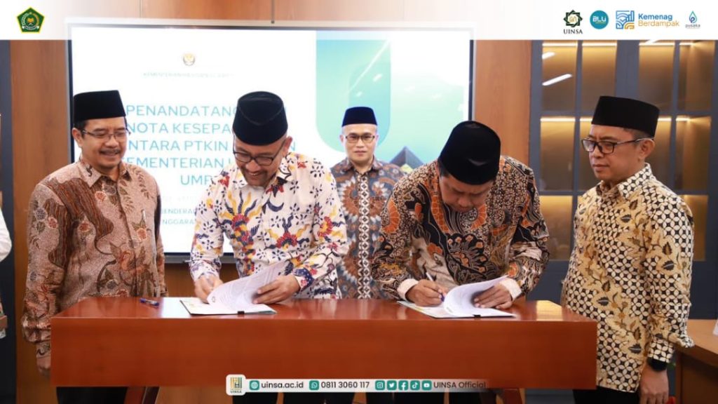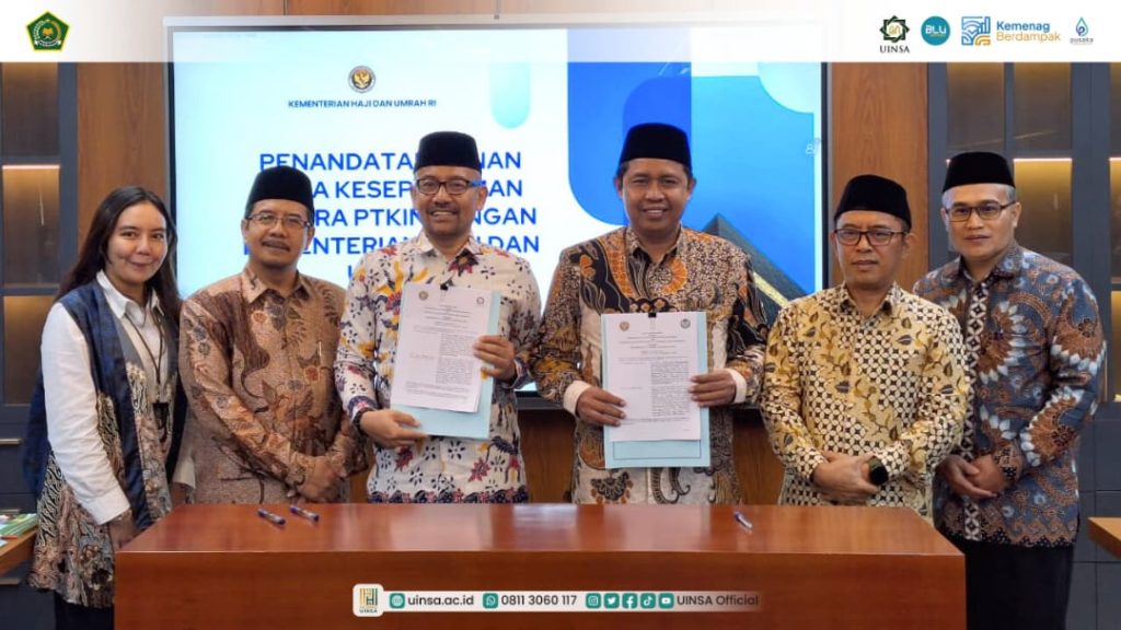 Penandatanganan MoU ini menjadi momentum penting bagi PTKIN dalam memperluas kontribusinya di bidang keagamaan dan pelayanan umat. Melalui kerja sama ini, PTKIN diharapkan dapat mencetak pembimbing haji dan umrah yang bersertifikat, profesional, dan berorientasi pada pelayanan jemaah yang unggul. (Nur/Humas)