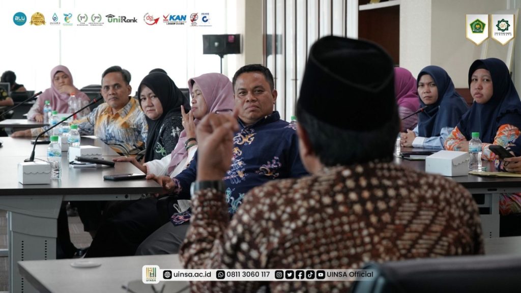 UINSA Newsroom, Rabu (08/10/2025); Universitas Islam Negeri Sunan Ampel (UINSA) Surabaya menerima kunjungan dari tim manajemen Universitas Islam Negeri Palangka Raya, Kalimantan Tengah, Rabu (8/10/2025). Rombongan UIN Palangka Raya disambut di ruang pertemuan Rektorat lantai 2, Gedung Tower Teungku Ismail Yakub, Kampus A. Yani UINSA Surabaya.