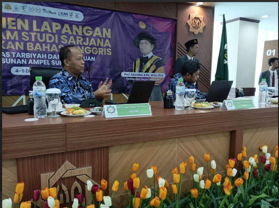 Surabaya — Fakultas Tarbiyah dan Keguruan (FTK) UIN Sunan Ampel Surabaya (UINSA) menyelenggarakan kegiatan akreditasi Program Studi S1 Pendidikan Bahasa Inggris pada Kamis–Jumat, 4–5 Desember 2025. Proses asesmen berlangsung selama dua hari dengan rangkaian kegiatan intensif yang melibatkan pimpinan universitas, lembaga, fakultas, asesor, dosen, mahasiswa, alumni, serta tenaga kependidikan.