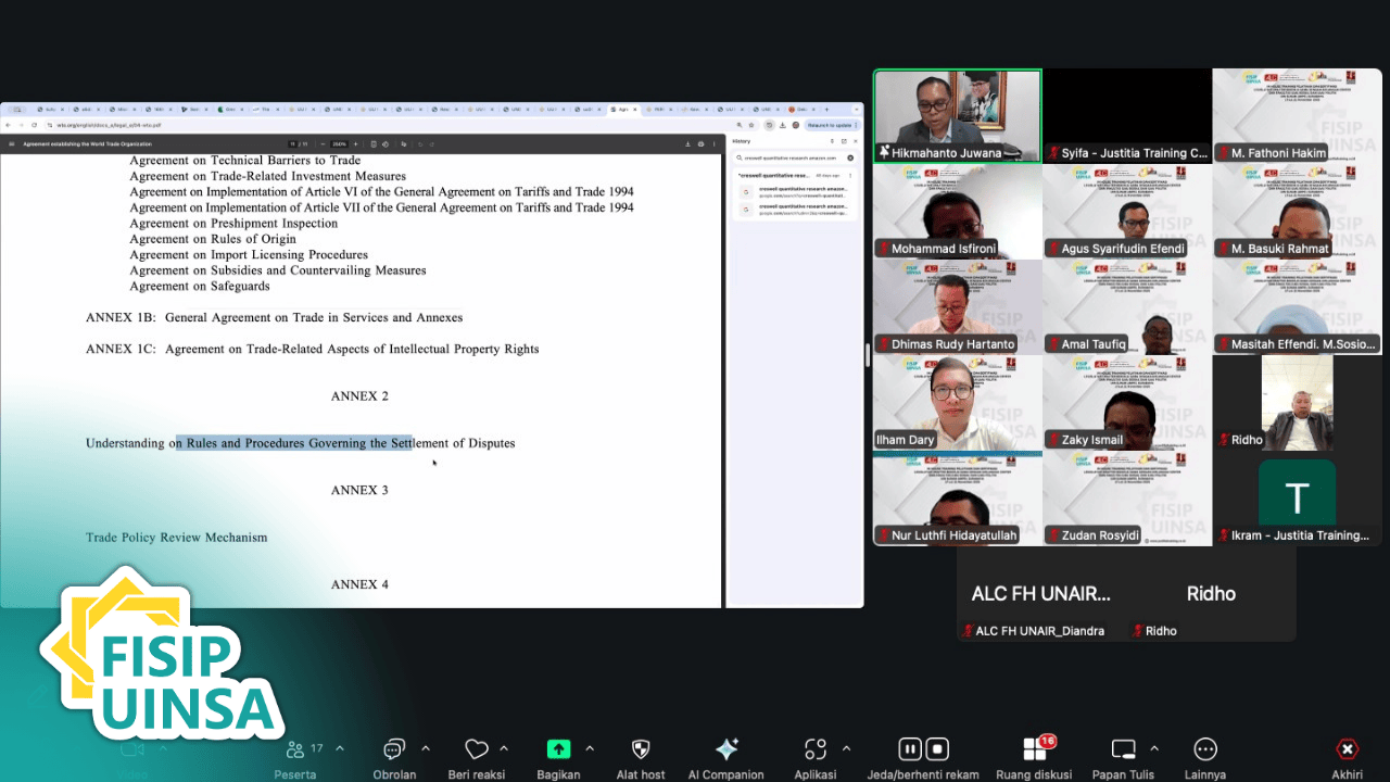 Pelatihan ini diadakan secara daring (online) melalui platform konferensi video, memberikan kesempatan kepada para dosen untuk fokus mendalami materi tanpa terhalang jarak. Kegiatan dilaksanakan mulai hari Senin, 17 November hingga Kamis, 20 November 2025, dengan jam belajar yang padat, dari pukul 08.00 hingga 18.00 WIB setiap harinya. Totalitas waktu yang dialokasikan menunjukkan keseriusan FISIP UINSA dalam membekali staf akademiknya dengan keahlian strategis ini.