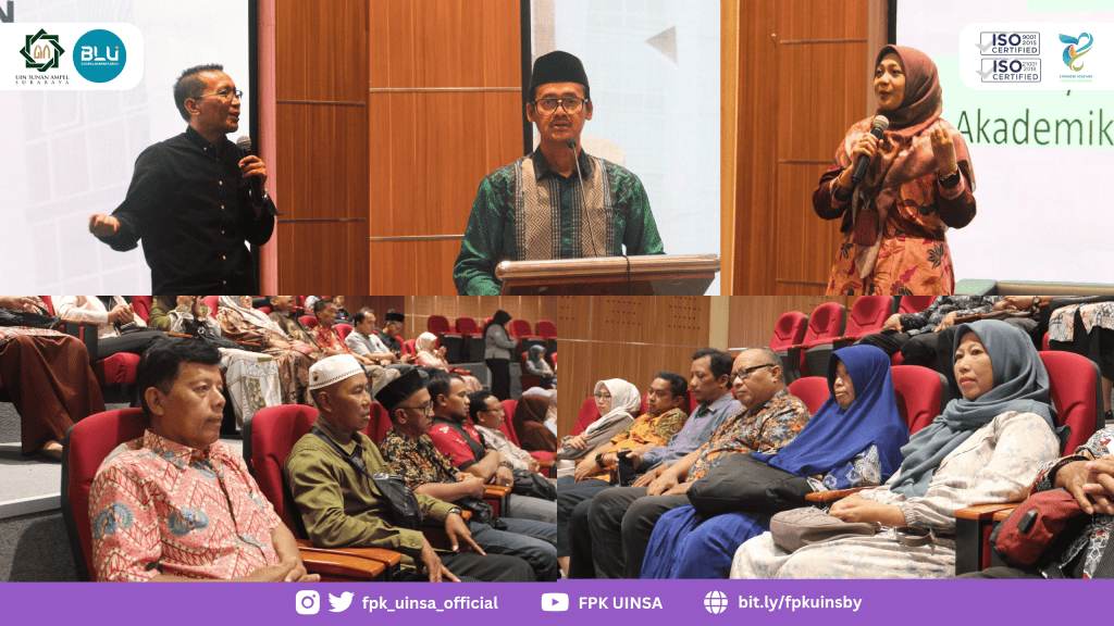 Selanjutnya, Dr. S. Khorriyatul Khotimah, M.Psi., Psikolog., selaku Wadek II memaparkan tentang layanan akademik yang meliputi sistem registrasi dan pemrograman mata kuliah, layanan administrasi, hingga akses terhadap beasiswa. Beliau juga menekankan adanya peluang besar bagi mahasiswa untuk mengikuti program student mobility internasional yang menjadi salah satu keunggulan FPK UINSA. Sementara itu, Prof. Dr. Rubaidi, M.Ag., selaku Wadek III, fokus pada bidang kemahasiswaan dengan menjelaskan peran organisasi mahasiswa (ORMAWA) seperti SEMA, DEMA, HIMA, UKM, dan media kampus dalam menunjang pengalaman non-akademik mahasiswa. Beliau juga memaparkan beragam prestasi yang berhasil diraih mahasiswa FPK di tingkat nasional maupun internasional.