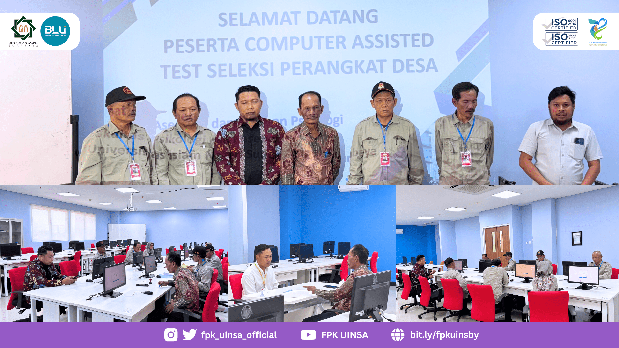 Surabaya – (03/09/2025) Pemerintah Desa Jombatan, Kabupaten Jombang, bekerja sama dengan Pusat Asesmen dan Layanan Psikologi Universitas Islam Negeri Sunan Ampel (PALP UINSA) Surabaya, menggelar seleksi calon perangkat desa. Kegiatan ini berlangsung di laboratorium komputer lantai 3 Fakultas Psikologi dan Kesehatan (FPK) UINSA serta diikuti oleh enam peserta.